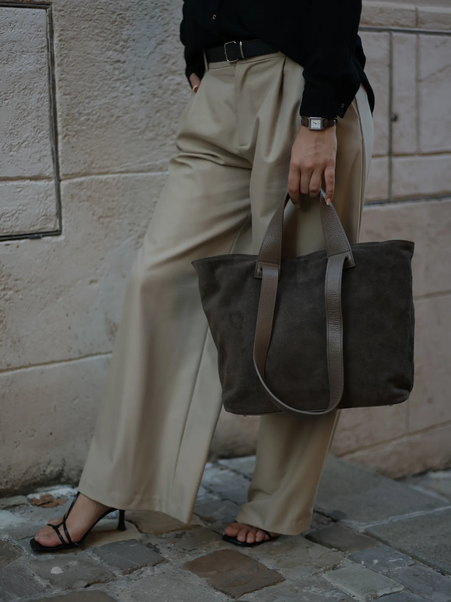 Сумка комбінована з натуральної шкіри, натуральної замши